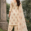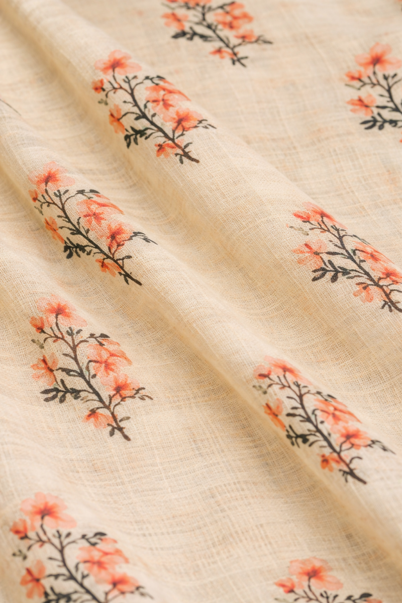 Made from breathable, lightweight cotton fabric, this kurta set offers all-day comfort while maintaining a polished appearance. The soft beige base is beautifully adorned with minimal floral prints in warm hues, creating a fresh and elegant aesthetic.